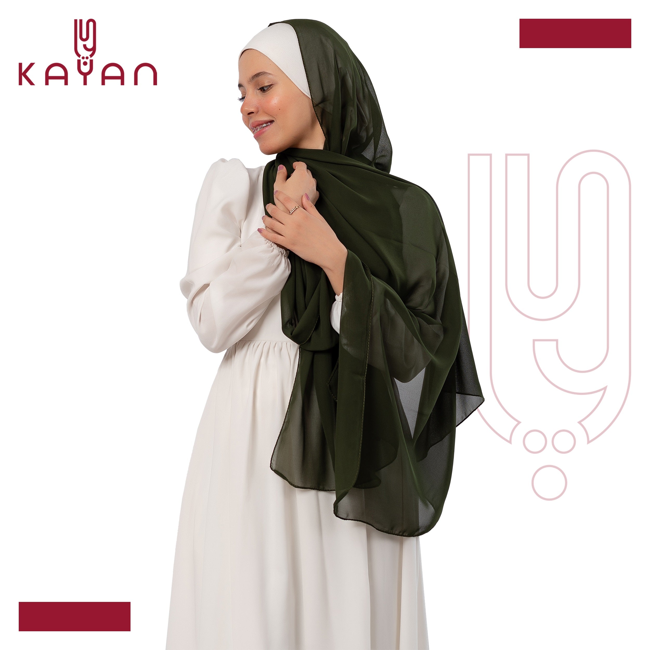 Chiffon Plain Scarf - Olive