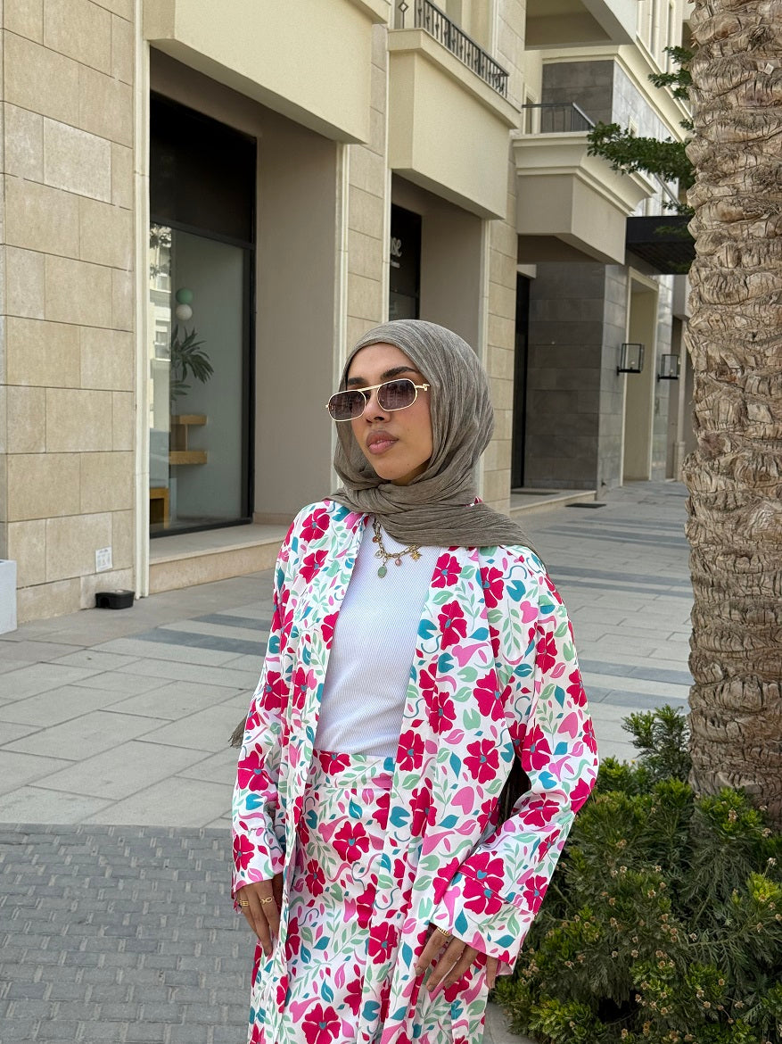 Red Flower Satin Set